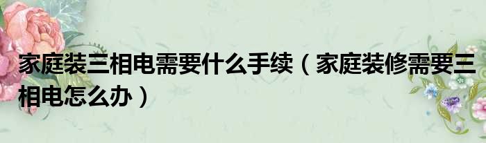 家庭装三相电需要什么手续(家庭装修需要三相电怎么办)