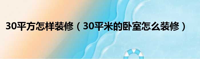30平方怎样装修(30平米的卧室怎么装修)