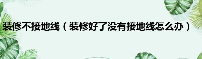 装修不接地线(装修好了没有接地线怎么办)