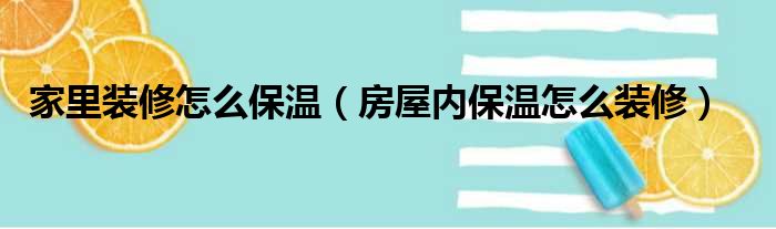 家里装修怎么保温(房屋内保温怎么装修)