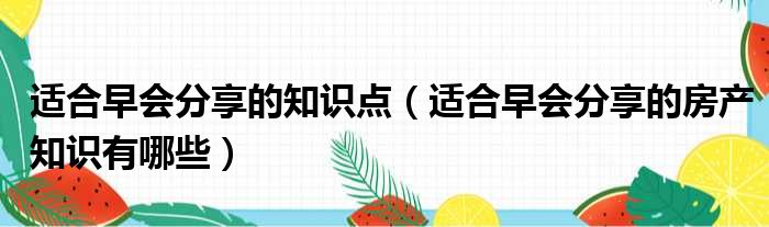 适合早会分享的知识点(适合早会分享的房产知识有哪些)
