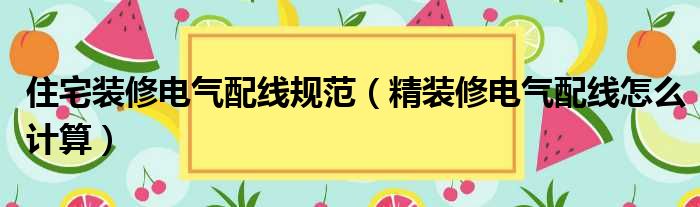 住宅装修电气配线规范(精装修电气配线怎么计算)