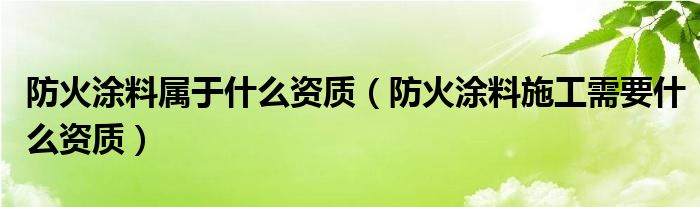 防火涂料属于什么资质(防火涂料施工需要什么资质)