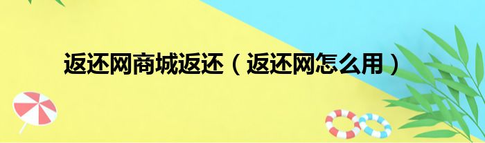 返还网商城返还(返还网怎么用)