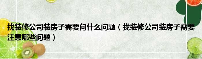找装修公司装房子需要问什么问题(找装修公司装房子需要注意哪些问题)