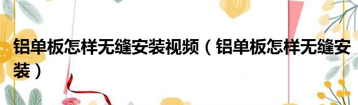 铝单板怎样无缝安装视频(铝单板怎样无缝安装)