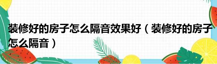 装修好的房子怎么隔音效果好(装修好的房子怎么隔音)