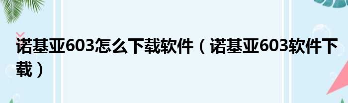 诺基亚603怎么下载软件(诺基亚603软件下载)