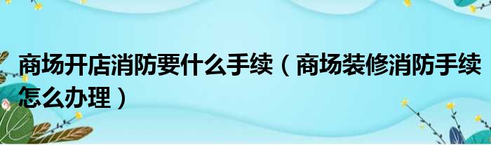 商场开店消防要什么手续(商场装修消防手续怎么办理)
