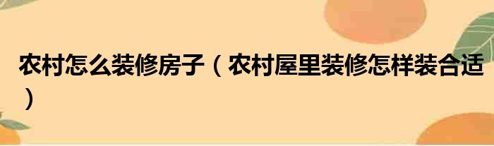 农村怎么装修房子(农村屋里装修怎样装合适)