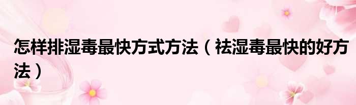 怎样排湿毒最快方式方法(祛湿毒最快的好方法)