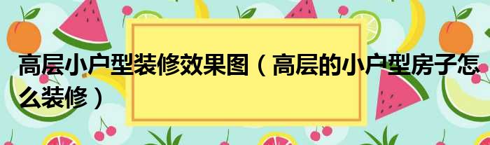 高层小户型装修效果图(高层的小户型房子怎么装修)