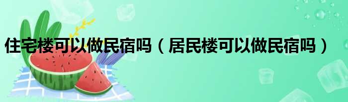 住宅楼可以做民宿吗(居民楼可以做民宿吗)