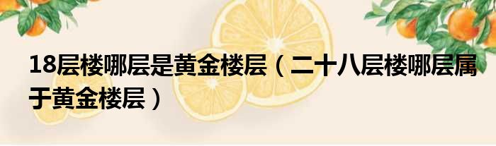 18层楼哪层是黄金楼层(二十八层楼哪层属于黄金楼层)