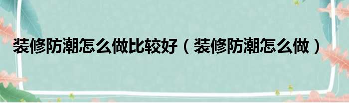 装修防潮怎么做比较好(装修防潮怎么做)