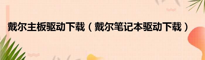 戴尔主板驱动下载(戴尔笔记本驱动下载)