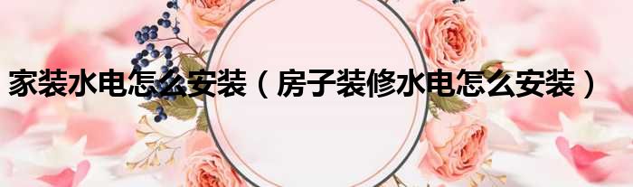家装水电怎么安装(房子装修水电怎么安装)