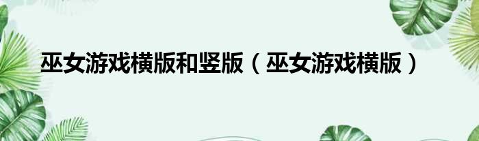 大家好,今天小六子来为大家解答以下的问题,关于巫女游戏横版和竖版,巫女游戏横版这个很多人还不知道,现在让我们一起来看看吧!