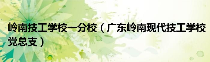 导读 大家好,今天小六子来为大家解答以下的问题,关于岭南技工学校一分校,广东岭南现代技工学校党总支这个很多人还不知道,现在让我们一起来看