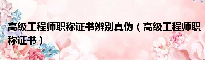高级工程师职称证书辨别真伪(高级工程师职称证书)