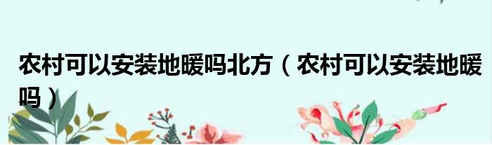 农村可以安装地暖吗北方(农村可以安装地暖吗)