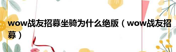wow战友招募坐骑为什么绝版(wow战友招募)