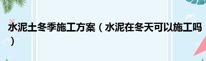 水泥土冬季施工方案(水泥在冬天可以施工吗)