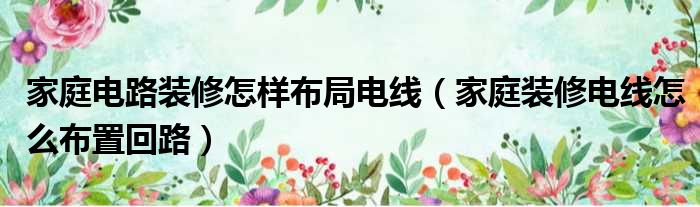 家庭电路装修怎样布局电线(家庭装修电线怎么布置回路)