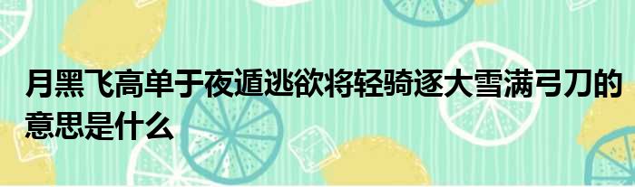 月黑飞高单于夜遁逃欲将轻骑逐大雪满弓刀的意思是什么