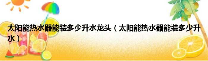 太阳能热水器能装多少升水龙头(太阳能热水器能装多少升水)