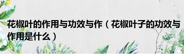 花椒叶的作用与功效与作(花椒叶子的功效与作用是什么)