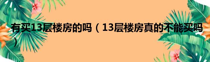 有买13层楼房的吗(13层楼房真的不能买吗)
