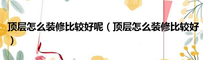 顶层怎么装修比较好呢(顶层怎么装修比较好)