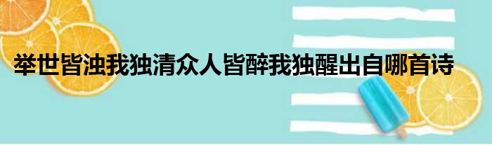 举世皆浊我独清众人皆醉我独醒出自哪首诗