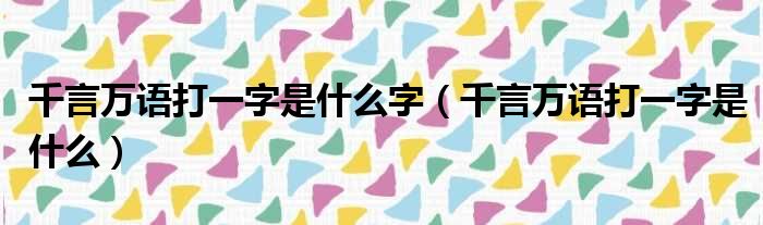 千言万语打一字是什么字(千言万语打一字是什么)