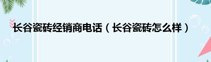 长谷瓷砖经销商电话(长谷瓷砖怎么样)