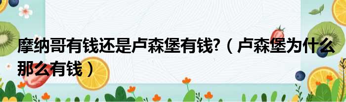 导读 大家好,今天小六子来为大家解答以下的问题,关于摩纳哥有钱还是卢森堡有钱?,卢森堡为什么那么有钱这个很多人还不知道,现在让我们一起来看