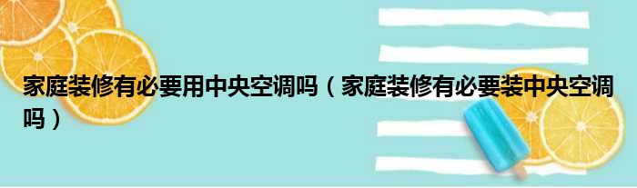 家庭装修有必要用中央空调吗(家庭装修有必要装中央空调吗)