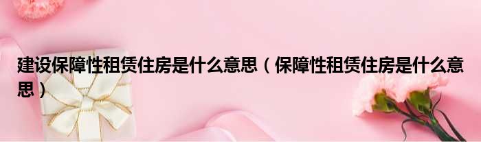 建设保障性租赁住房是什么意思(保障性租赁住房是什么意思)