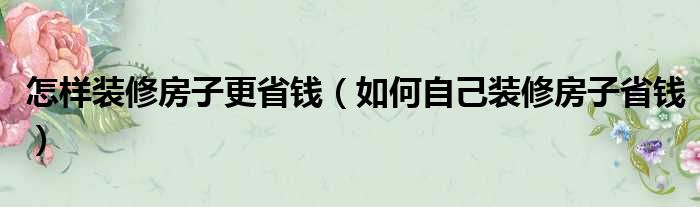 怎样装修房子更省钱(如何自己装修房子省钱)