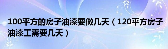 100平方的房子油漆要做几天(120平方房子油漆工需要几天)