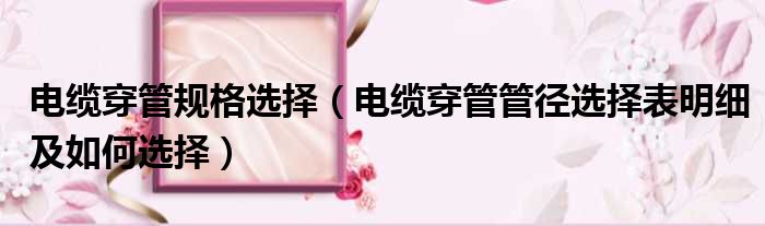电缆穿管规格选择(电缆穿管管径选择表明细及如何选择)