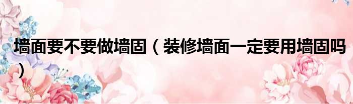 墙面要不要做墙固(装修墙面一定要用墙固吗)
