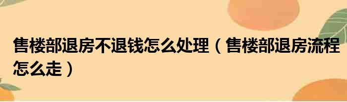 售楼部退房不退钱怎么处理(售楼部退房流程怎么走)