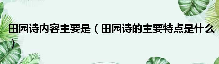 导读 大家好,今天小六子来为大家解答以下的问题,关于田园诗内容主要是,田园诗的主要特点是什么这个很多人还不知道,现在让我们一起来看看吧!1