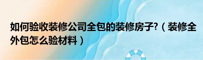 如何验收装修公司全包的装修房子?(装修全外包怎么验材料)