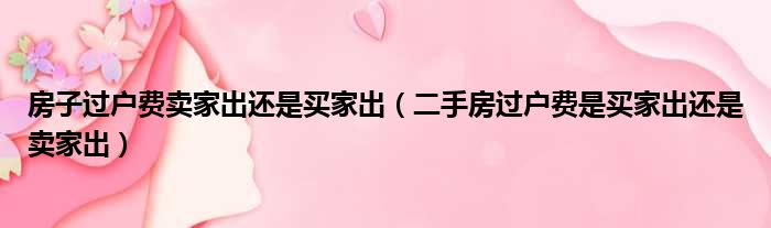 房子过户费卖家出还是买家出(二手房过户费是买家出还是卖家出)