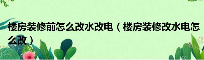 楼房装修前怎么改水改电(楼房装修改水电怎么改)