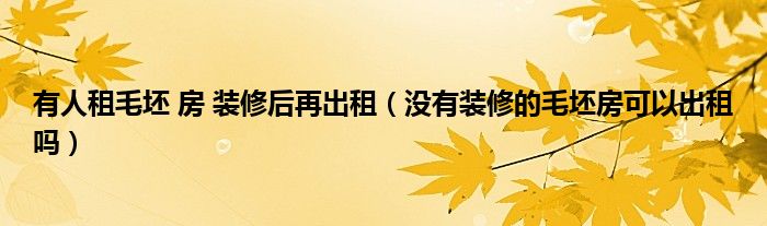 有人租毛坯 房 装修后再出租(没有装修的毛坯房可以出租吗)