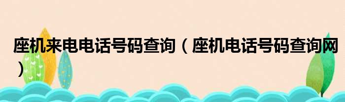 导读 大家好,今天小六子来为大家解答以下的问题,关于座机来电电话号码查询,座机电话号码查询网这个很多人还不知道,现在让我们一起来看看吧!1